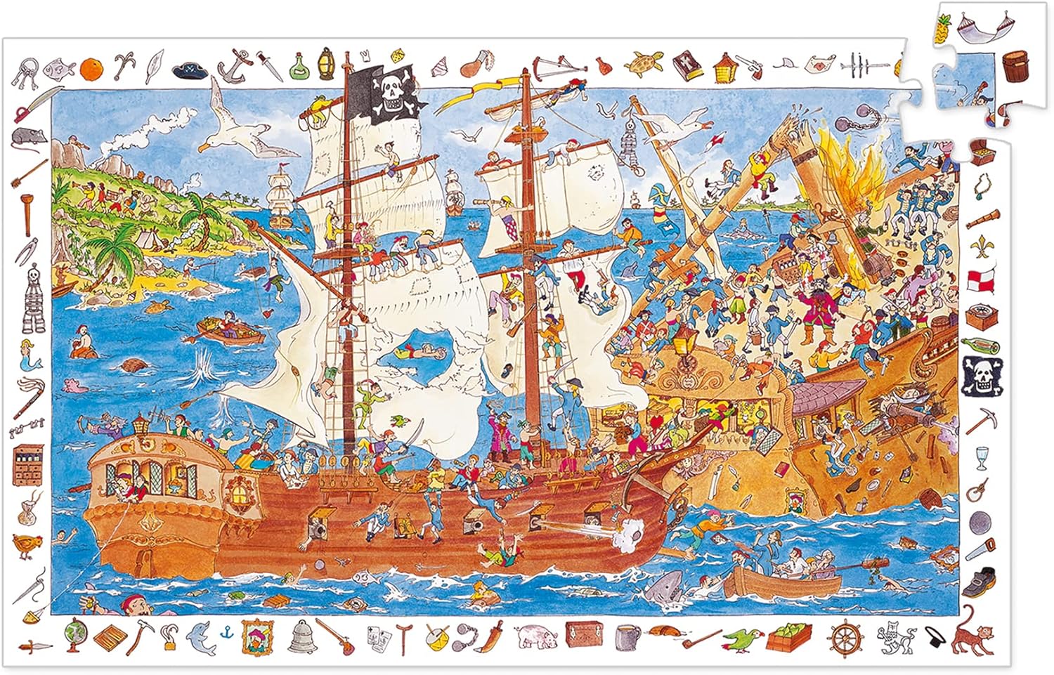 All aboard for puzzle fun! Children can build the puzzle and then search for the hidden items shown around the border. The detailed, colourful illustration is full of surprises to spot and enjoy. Made in Europe from FSC® certified materials, this high-quality puzzle also includes a full-sized poster for reference!