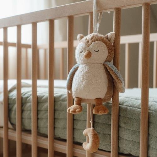 Sweet dreams begin with this friendly owl who watches over bedtime. It guides your little one to a world full of calm and imagination. Pull down the tiny moon to start a soothing lullaby that helps your child drift off peacefully. The gentle melodies make bedtime feel warm and comforting. It also looks lovely in the nursery and makes a thoughtful gift.