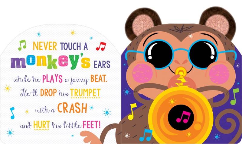 Dimensions: 153 x 153 x 13 mm Number of pages: 12 Description: You must never touch a monkey’s ears… unless it’s in this book! This touch-and-feel board book is filled with amusing rhymes about musical monkeys and apes, from a grumpy gorilla to a dancing orangutan. Little hands can have fun touching soft, fluffy ears in this hilarious addition to our Never Touch range. Two fluffy touch-and-feel ears Format: Board Book