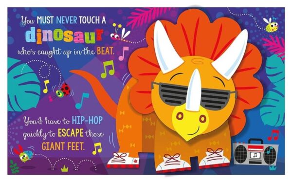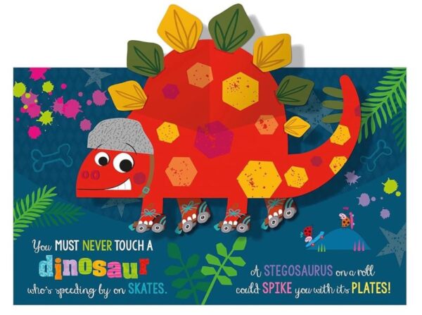 Dimensions: 210 x 250 x 20 mm Number of pages: 16 Description: Meet the busy dinosaurs, and watch as they pop out of this book . . . if you dare! Turn the pages to see the 3-D dinos dance, surf and POP to life as you explore this funny book together. This clever format makes for a roarsome addition to our well-loved Never Touch range Format: Pop-up hard cover