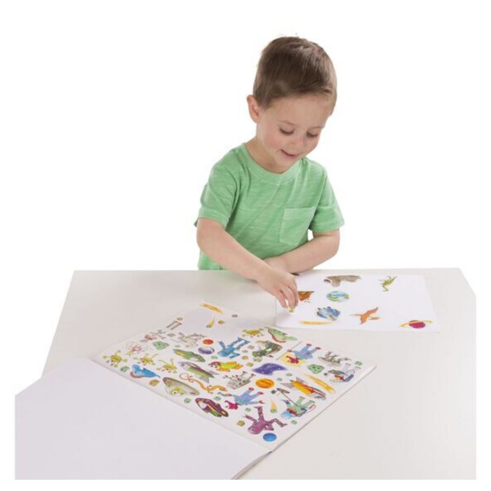 Over 500 stickers are compiled in one giant sticker book. Each page is packed with stickers to illustrate favorite topics including dinosaurs, construction, outer space and many more. Create a picture or tell a story with these favorite themed stickers.