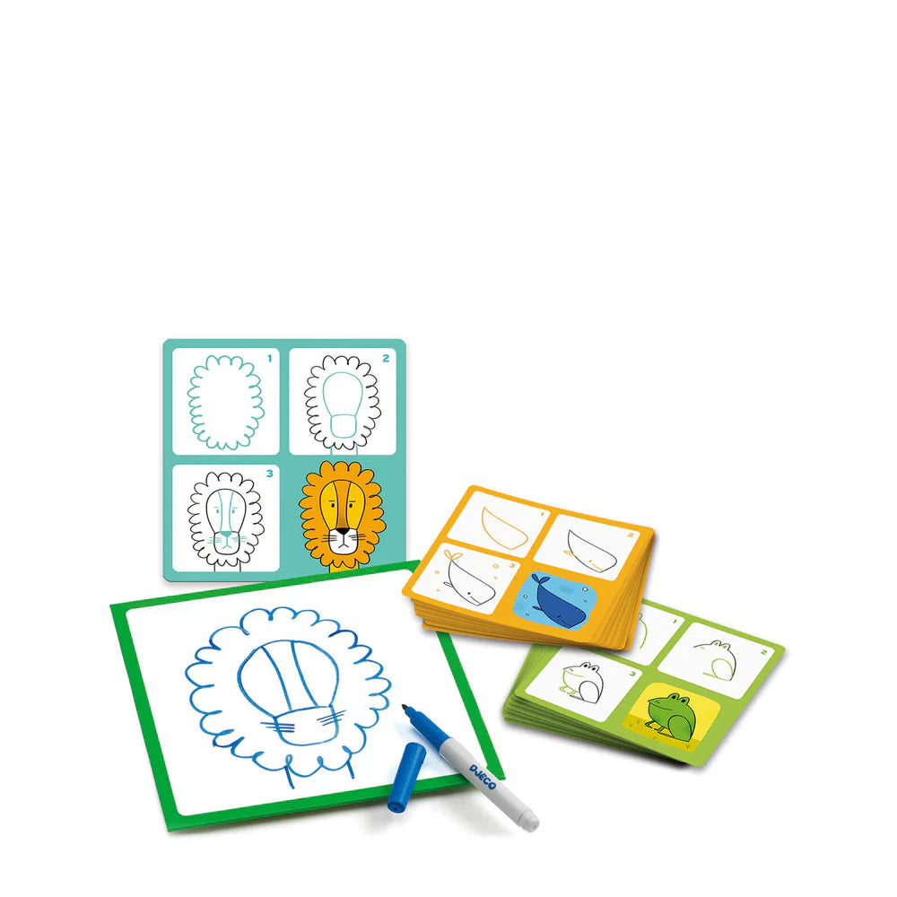 Learn to draw animals with this easy, step by step activity. Model cards guide children through each stage of the drawing, and the dry wipe marker means they can start again as many times as they like. A fun activity for learning how to draw.